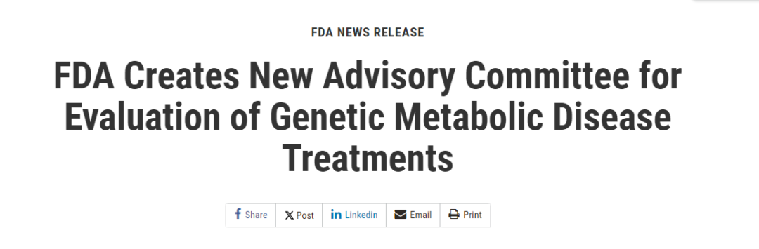 2023年12月12日,FDA宣布将成立一个新的专家咨询委员会,以研究遗传代谢病的潜在治疗方法。在必要时,遗传代谢疾病咨询委员会将就遗传代谢疾病医疗产品的技术、科学和政策问题向FDA提供独立、知识渊博的意见和建议。委员会成员将评估向咨询委员会提交的申请的关键问题的证据,并提出建议供FDA考虑。