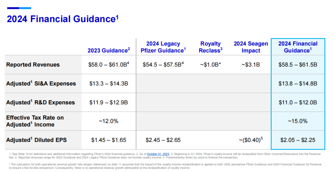 在12日更新的2024年度展望中,辉瑞还指出,Seagen收购预期影响为每股0.40美元的稀释。