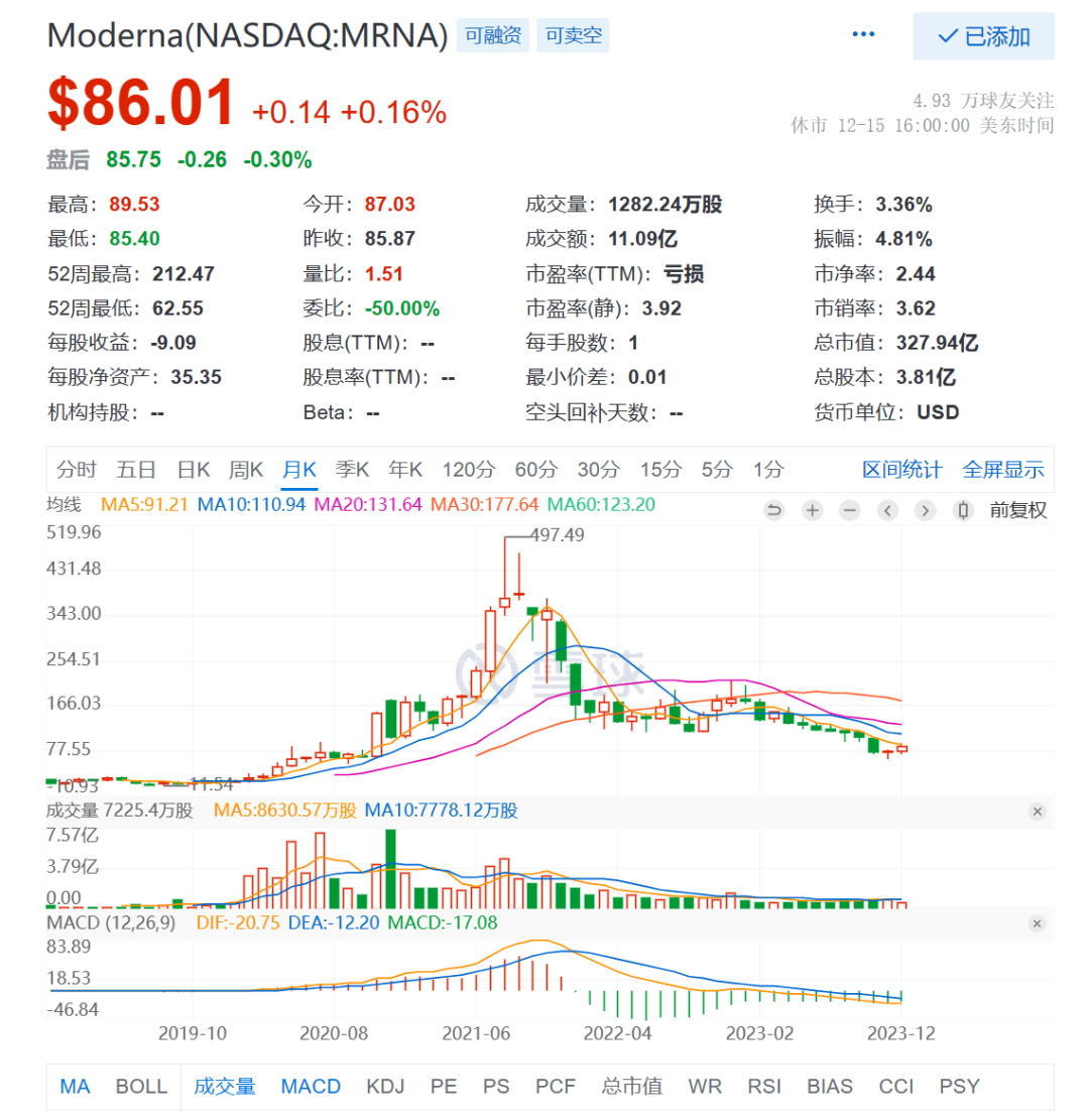 受此事影响,Modena股价大涨近10%,即便如此,Moderna股价仍处于历史低位。