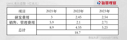 根据GRAIL招股书,截至2022年6月末,其账上运营现金余额为6.33亿美金。很显然,GRAIL大部分的运营支出,是由金主爸爸Illumina承担的。考虑到双方并表时间为2021年8月,即使只计算GRAIL2022年、2023年的运营支出,也已经达到9.8亿美元。