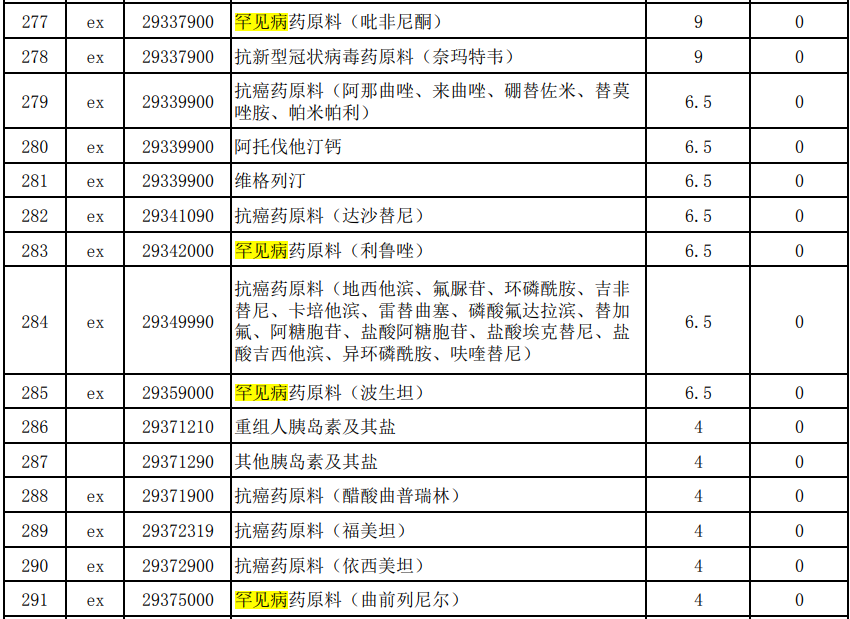 罕见病信息网从财政部官网获知,青霉胺、吡非尼酮、利鲁唑、波生坦、曲前列尼尔等罕见病药原料2024年将暂定“零税率”。