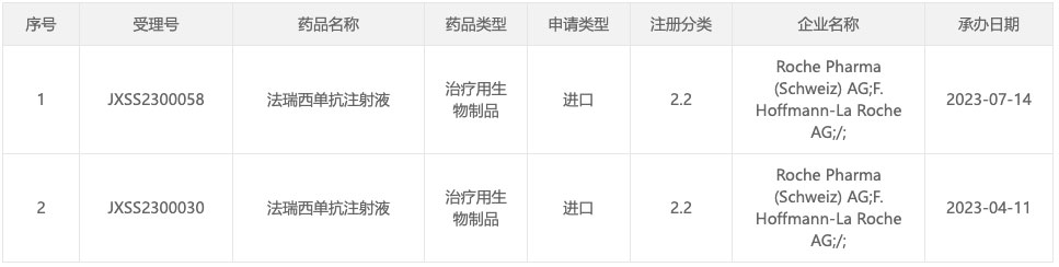 12 月 18 日,据 NMPA 官网显示,罗氏法瑞西单抗新适应症国内获批上市(受理号:JXSS2200032)。