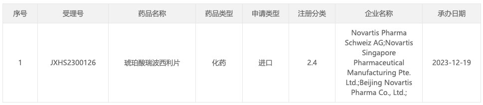 12 月 19 日,据 CDE 官网显示,诺华琥珀酸瑞波西利片新适应症国内申报上市(受理号:JXHS2300126)。推测适应症可能为辅助治疗 HR+/HER2-早期乳腺癌患者。