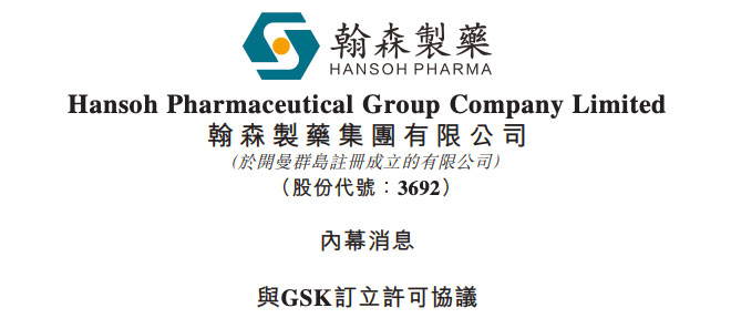 根据协议,翰森制药将授予葛兰素史克开发、生产及商业化 HS-20093 全球独占许可权利(不含中国大陆、香港、澳门及台湾地区)。翰森制药将收取 1.85 亿美元首付款,并有资格就该产品收取最多 15.25 亿美元的相关事件达成时的里程碑付款。该产品商业化后,GSK 还将就中国大陆、香港、澳门及台湾地区以外的全球淨销售额支付分级特许权使用费。