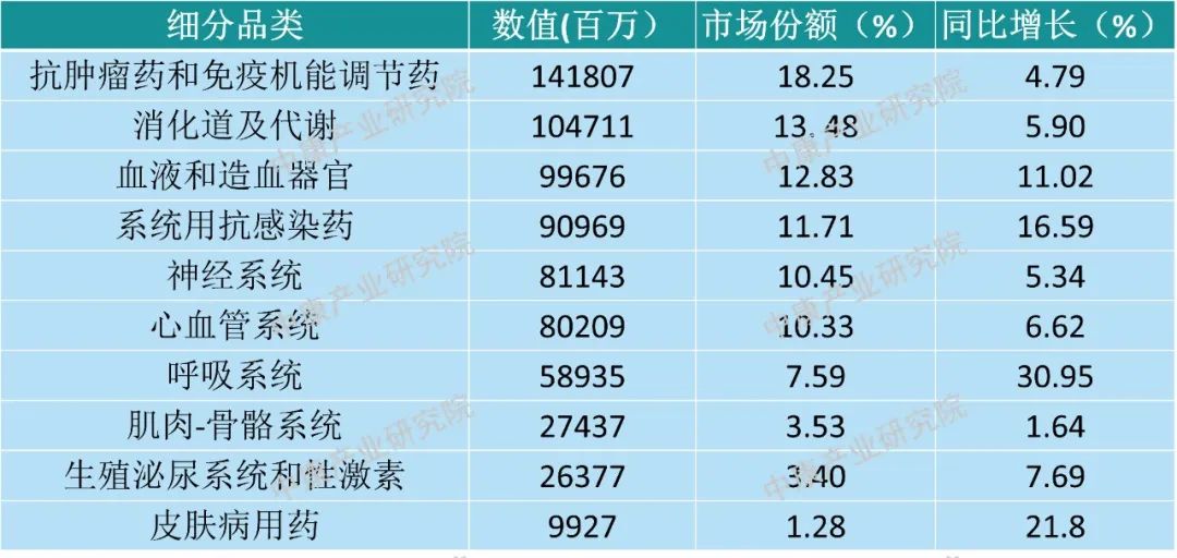 此外,抗肿瘤药和免疫机能调节药由于部分仿制的注射类大品种被集采后,降幅较大,导致整体增长仅4.79%。消化道及代谢则是新近集采涉及较多,部分降幅较大,使得整体增长仅5.9%。