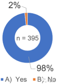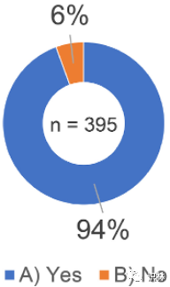 受访者被问及是否知道 ICH Q10 药品质量体系指南将“知识管理”称为实现 ICH Q10“药品质量体系”的过程。如图1所示,在 395 份回复中,94%(373 份回复)的受访者回答“是”。