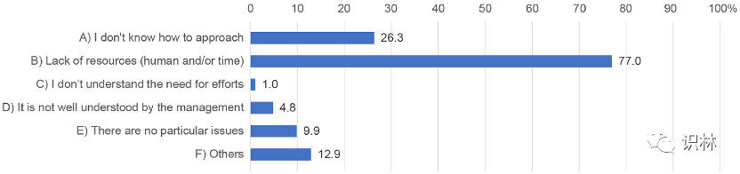 研究在旨在实现培养质量文化的“理想状态”中发现了人力资源和/或时间资源方面的问题(图8),分析了所有 395 份回复。这个问题允许有多个答案。