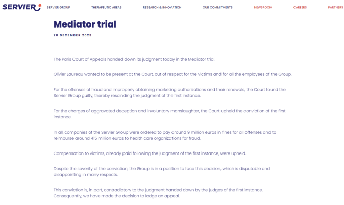 3.Servier found guilty of fraud, manslaughter in long-running case over deadly weight-loss pill