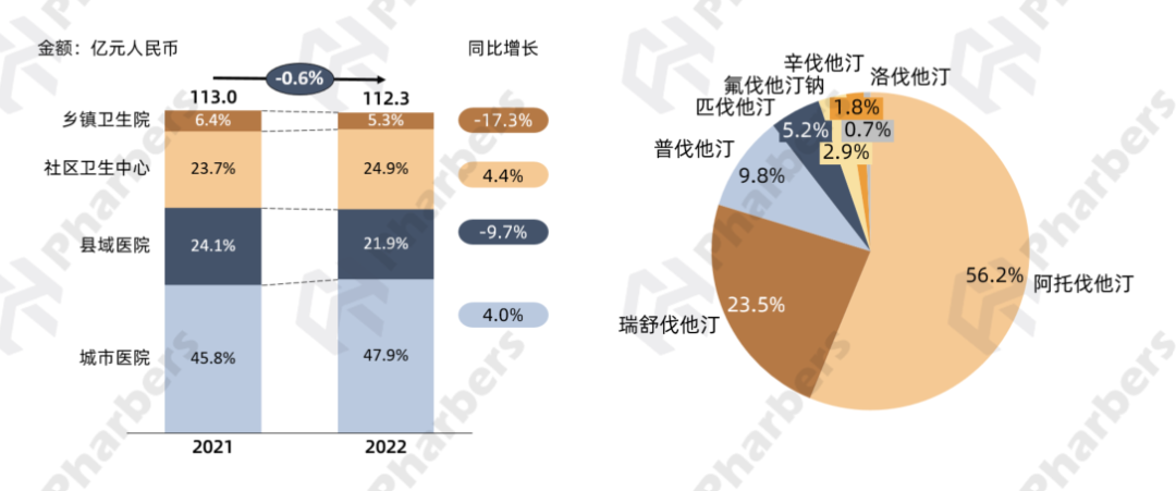 图2-2022年他汀类药物市场分子渠道销售额分布