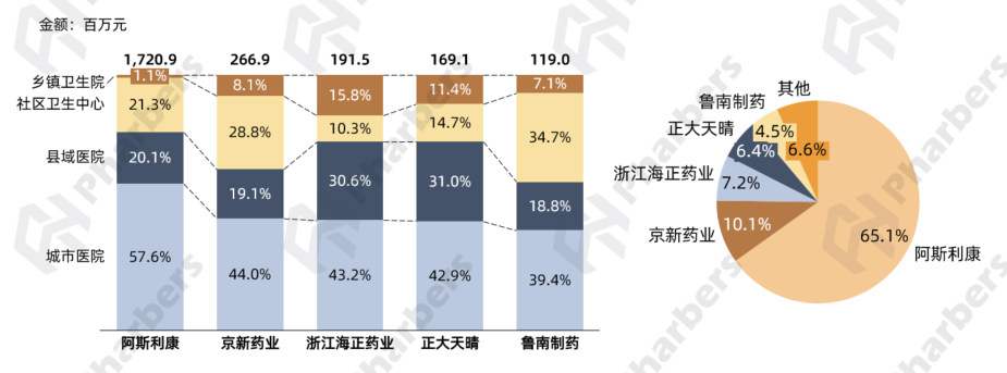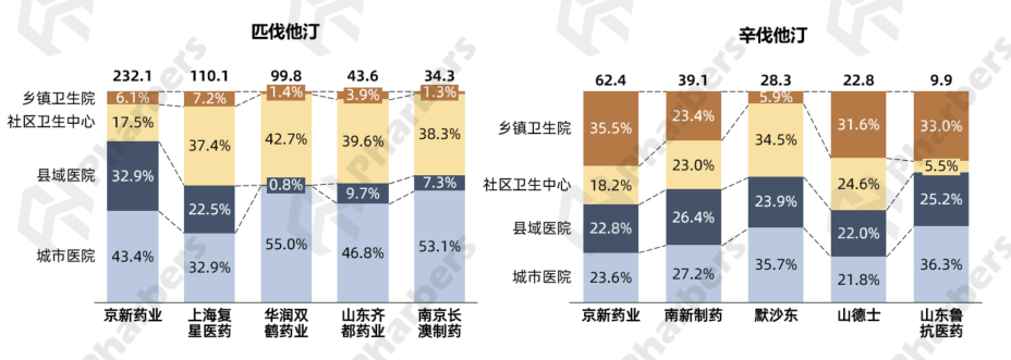 图6-2022年阿托伐他汀市场头部企业及渠道销售额分布