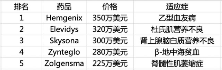 首创新药一旦研发成功,可以享受高价定价的权利,结果目前世界上出现天价的药物,最贵的5种药品如下: