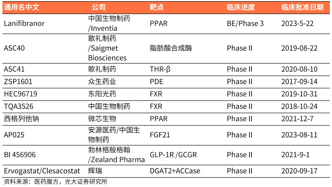 NASH药物的竞争,利好卖铲子的。全球遭受非酒精性脂肪肝病(NAFLD)/NASH 的人群约占总人口的1/4,患者基数庞大。现有 NAFLD/NASH 检测的金标准是肝穿刺活检,存在生理损伤、精度有限的缺点。福瑞股份产品Fibroscan有望成为下一代无创 NASH 检测的金标准,基于瞬时弹性成像技术可以高精度定性定量判断患者肝部脂肪含量与纤维化程度,费用低于核磁共振,设备投放+诊断收费分成的商业模式初步验证成功。中国生物制药以1200万美元首付款从Inventiva引进的 PPAR 激动剂Lanifibranor在国内进度最快,已推进至临床III期。歌礼制药的THR-β激动剂ASC41是可以室温保存的片剂(竞争对手VK2809是需冷藏保存的胶囊),处于II临床试验。众生药业的PDE 抑制剂 ZSP1601,作为一种全新机理化合物进入临床IIb期。