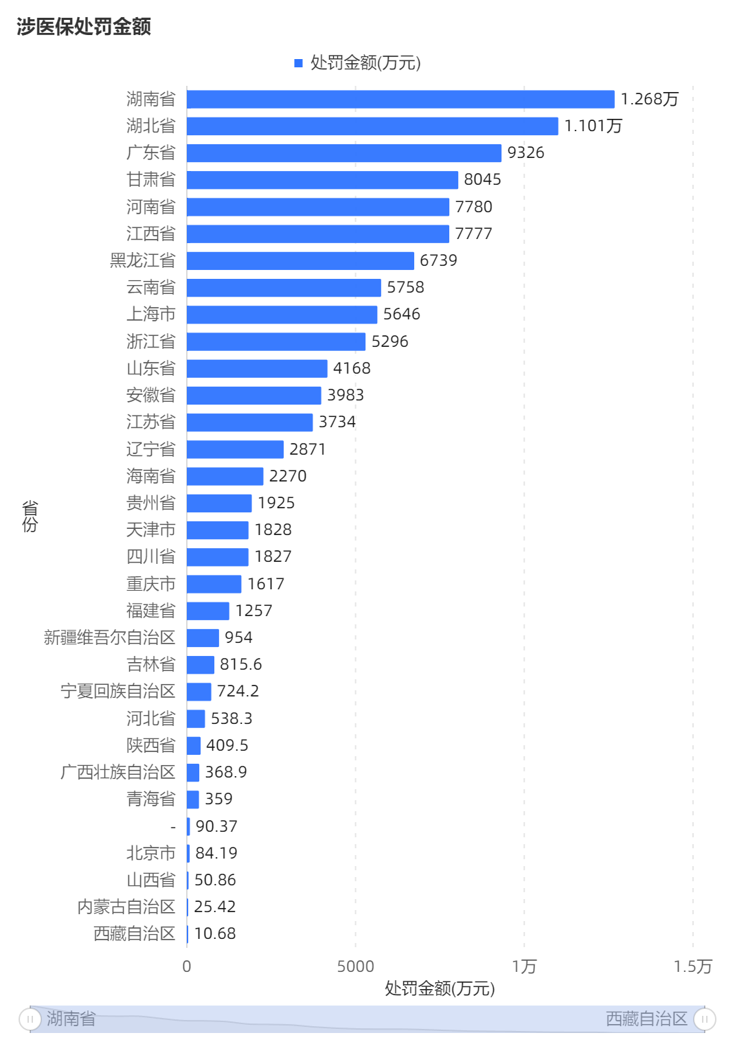 各省份涉医保处罚数量与金额,有2省处罚已过亿。
