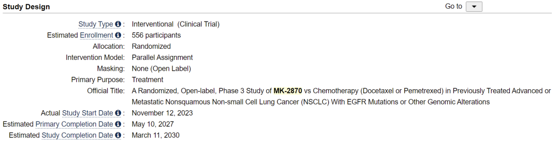 该三期临床MK-2870-004计划入组556例患者,以化疗为对照组,设计PFS、OS双主要终点。