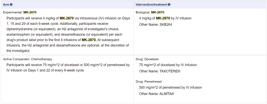 该三期临床MK-2870-005计划入组710例患者,以化疗为对照组,同样设置PFS、OS双主要终点。