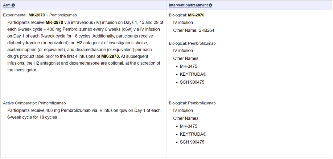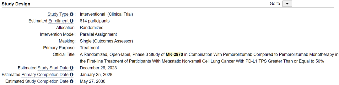该三期临床MK-2870-007计划入组614例患者,以PD-1抗体Keytruda单药治疗为对照组,设置OS为主要终点。