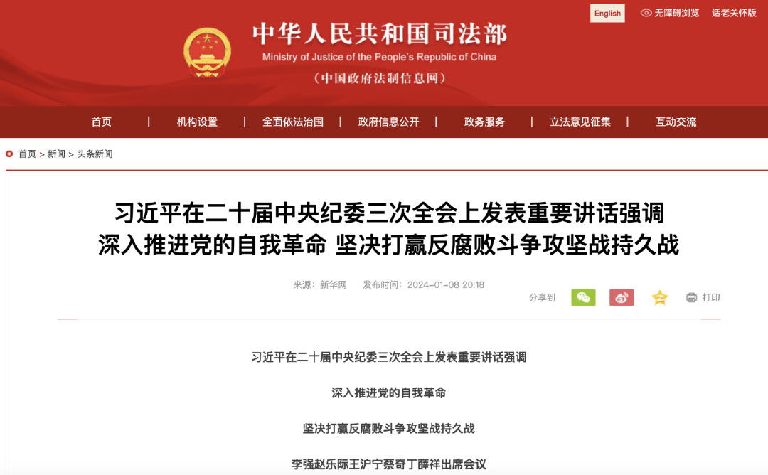 2024年开年的1月1日,中央纪委国家监委网站发布文章《纵深推进新征程纪检监察工作高质量发展|坚决打赢反腐败斗争攻坚战持久战》,在“突出重点领域”中表示,加大对国企、金融、医疗、粮食购销、乡村振兴、烟草、体育和统计造假等领域案件查处的力度,坚决清理风险隐患大的行业性、系统性、地域性腐败。