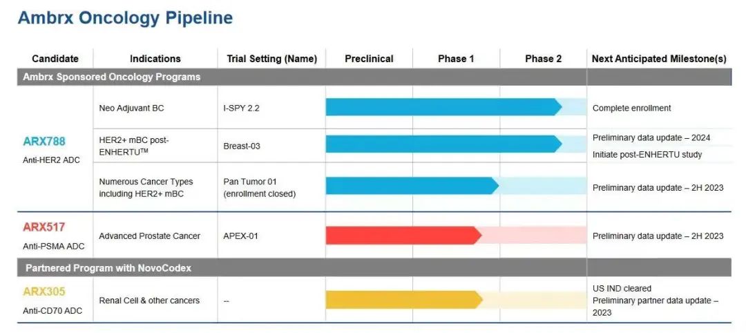 Ambrx为国内投资者熟知是将其HER2 ADC(ARX788)中国权益授予浙江新码生物(同时新码生物也获得了Ambrx的CD70 ADC权益)。不过,Ambrx的核心管线并非前两者,而是主打前列腺癌的ARX517(PSMA ADC),目前已经推进至临床二期阶段。