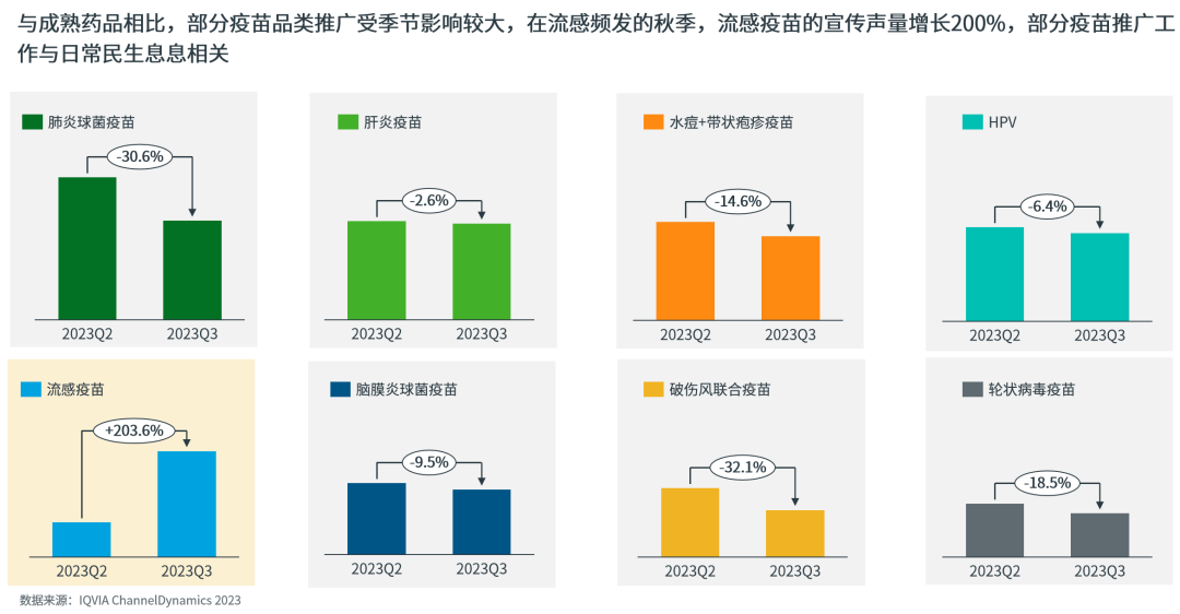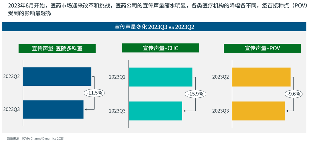 根据IQVIA ChannelDynamics 2023年三季度数据显示,POV的宣传教育工作受到行业变革影响最小,由于预防疾病的成本远低于治疗疾病的成本,预防成为最为经济有效的健康策略。