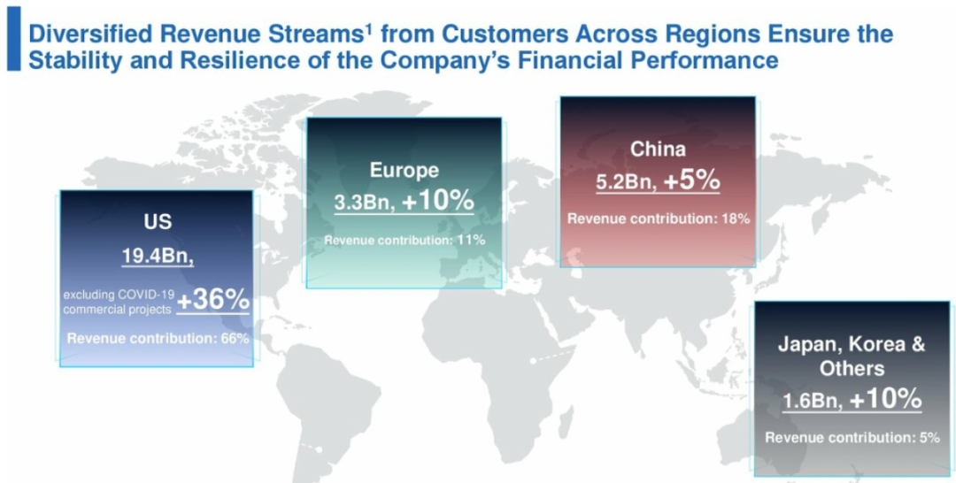 美国业务增长最为迅猛,占到总收入的接近一半。