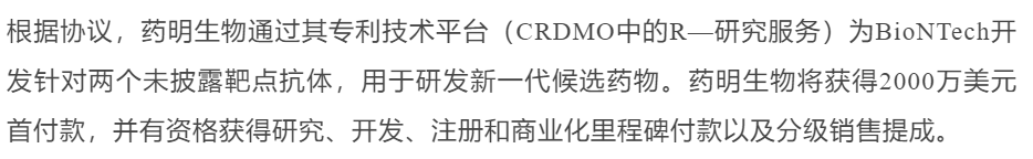 JPM会议期间,药明生物与BioNTech达成两款单抗药物研究服务协议,后者支付2000万美元预付款,以及额外的里程碑和销售分成。药明生物今日股价大涨10%。