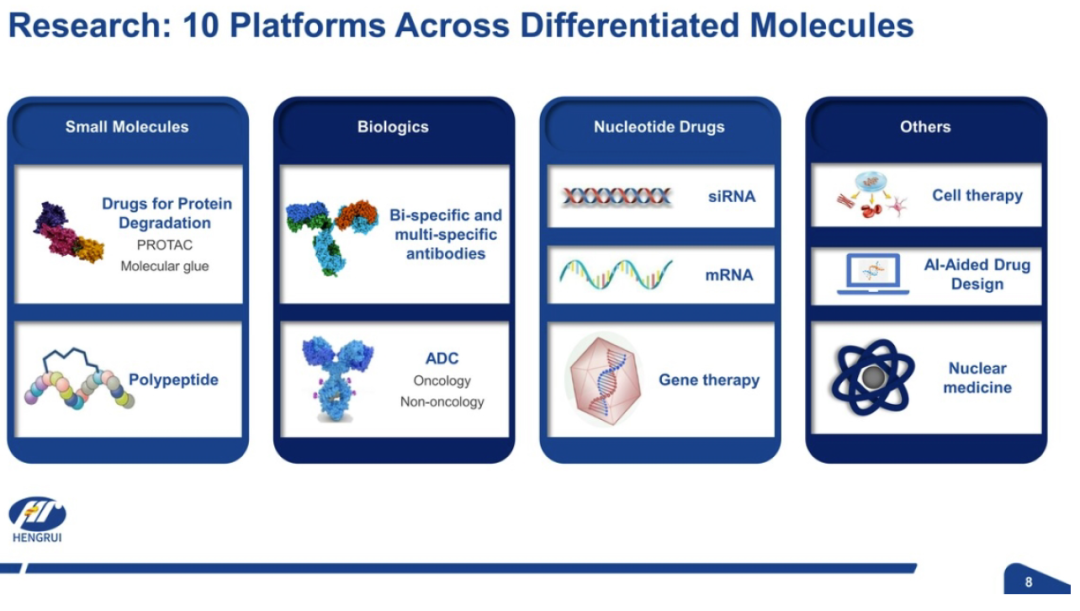 恒瑞医药创新转型坚决,同时布局10种新药物形式。