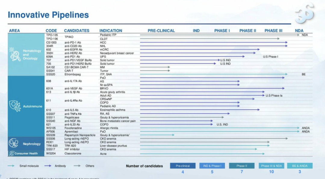 三生制药特比澳创收能力强大,收购国健后重点扩展布局自免领域。
