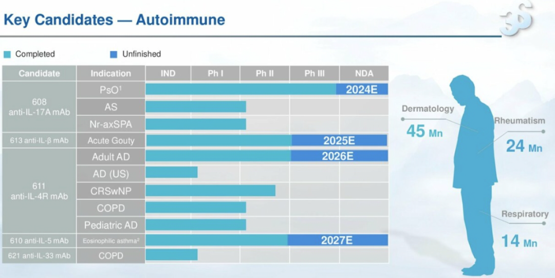 肿瘤领域之外,诺诚健华围绕BTK抑制剂进行自免领域的全面拓展,后续的TYK2抑制剂也进入二期临床阶段等。