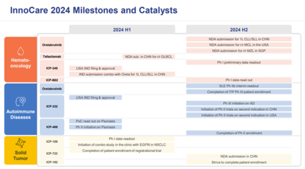 2024年将迎来多个重要里程碑,包括奥雷巴替尼获批开展美国注册临床,Lisaftoclax递交上市申请,奥雷巴替尼医保覆盖范围拓展等。