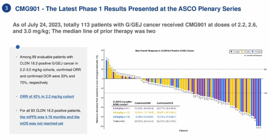 CMG901为全球首款Claudin18.2 ADC,安斯泰来单抗因生产问题收到CRL,给后来者更多缩小差距的机会。
