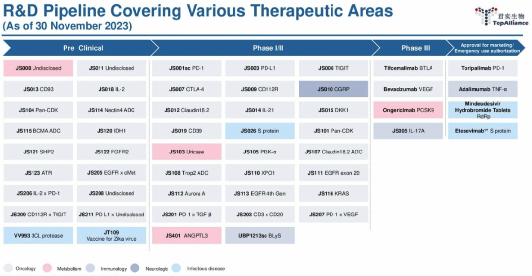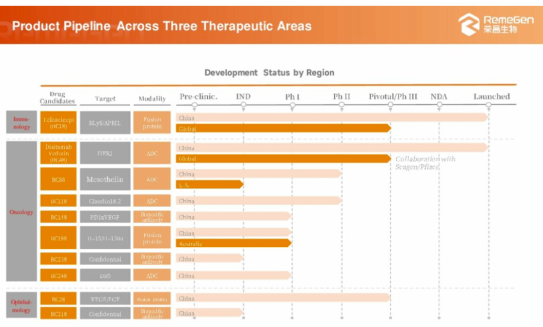 多款项目进行海外临床开发,不过TIGIT抗体刚刚被Coherus退回。