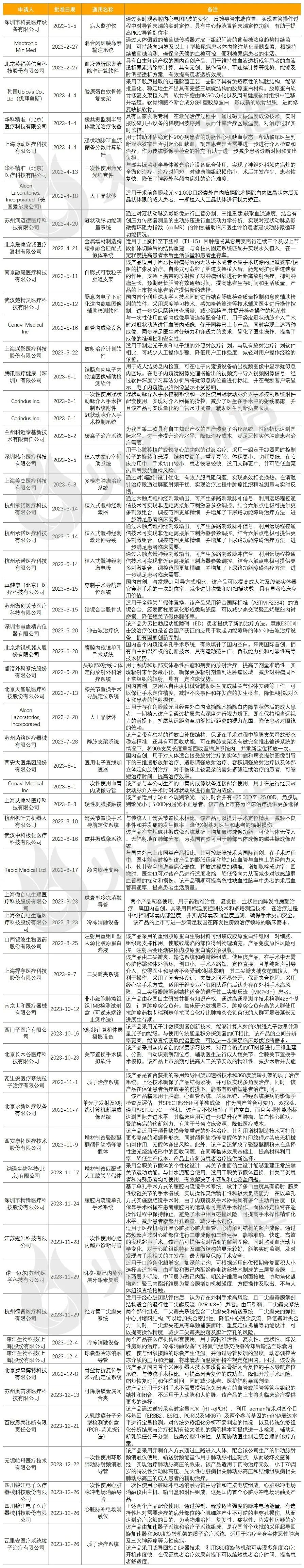 表3 2023年获批上市的三类创新器械