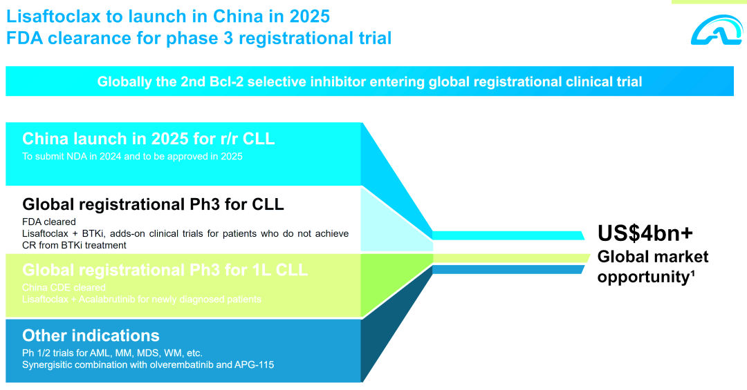 APG-2575两个全球注册III期临床研究正在进行,稳扎稳打推进国际化,广覆盖血液瘤多适应症,瞄准40亿美元以上全球市场机会。