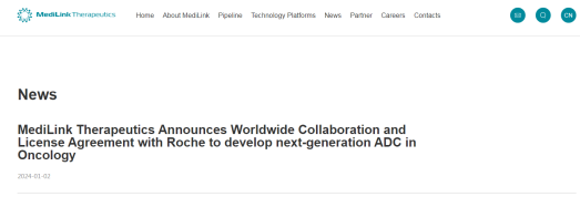 1月2日,宜联生物宣布已与罗氏达成全球合作和许可协议。双方将合作开发靶向间质表皮转化因子(c-MET)的下一代抗体偶联药物候选产品YL211。