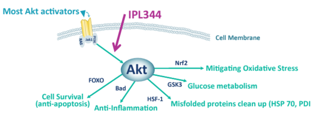 ALS是一种进行性神经退行性疾病,影响大脑和脊髓中的神经细胞,也被称为“渐冻症”。IPL344是一种生物活性肽,能够激活治疗性细胞信号传导,包括Akt通路。在神经退行性疾病中,Akt通路的表达通常会降低。IPL344已被欧洲药品管理局(EMA)和美国FDA授予孤儿药资格,用于治疗ALS。