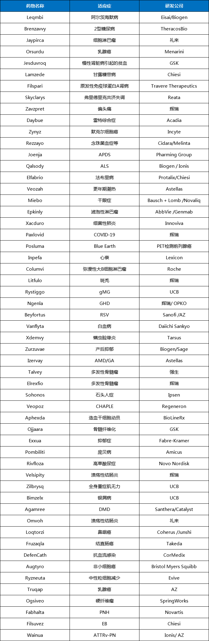 2023年,美国FDA药物评价与研究中心(CDER)共批准55款新药,包括37款新分子实体以及18款生物制剂,仅次于2018年的59款,相比于2022年仅批准了37款新药,同比提升49%。