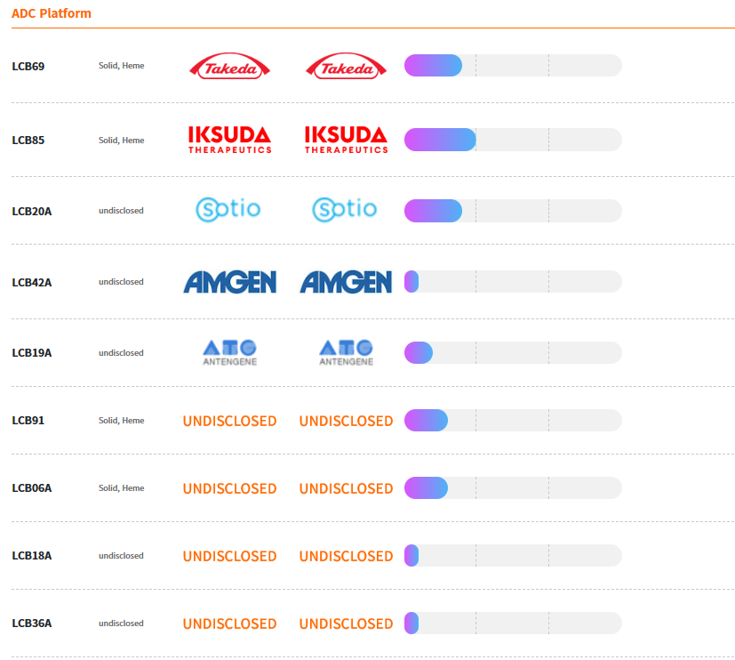 LegoChem管道ADC 平台还吸引了武田(Takeda)、安进(Amgen)、益科达治疗(Iksuda Therapeutics)和复星医药(Fosun Pharma)等公司的一系列合作。