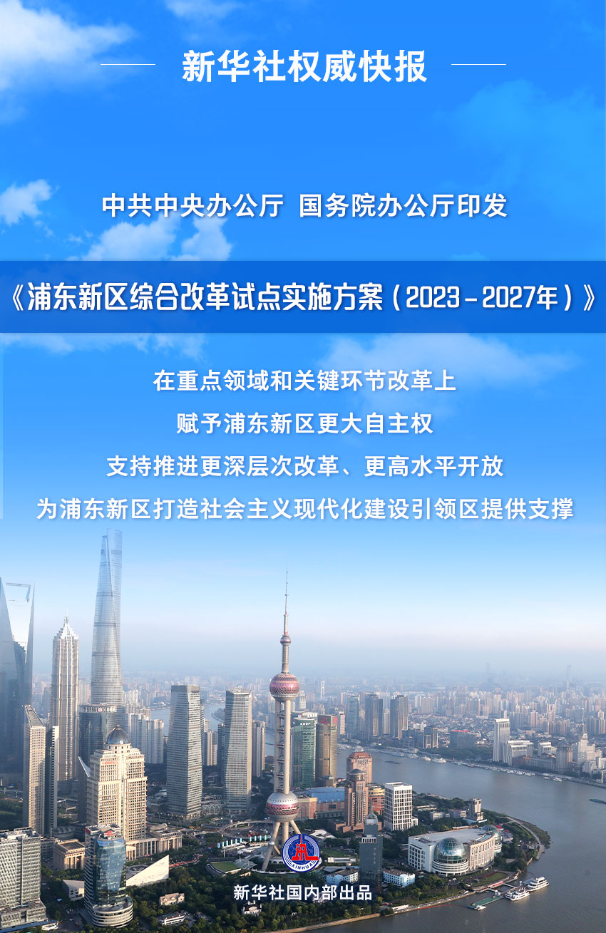 中共中央办公厅、国务院办公厅印发的《浦东新区综合改革试点实施方案(2023-2027年)》1月22日发布。