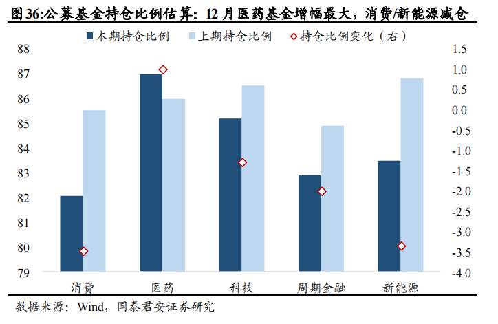 仅以12月份看,公募资金看好医药的论调也变得密集,据国泰君安研究所统计:12月份公募基金医药仓位在全行业中是增幅最大的。