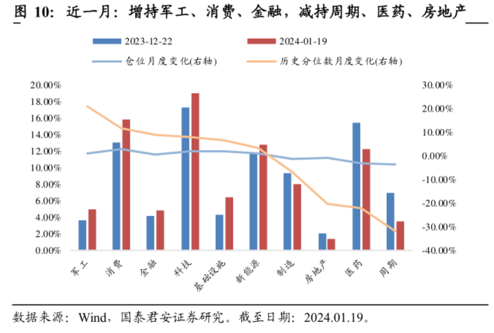 除了巨额解禁的压力之外,非医药主题基金减配医药行业的迹象也非常明显。据国泰君安研究所数据显示:2023年12月22日至2024年1月19日期间,医药行业是主动基金减配最多的前两名赛道。