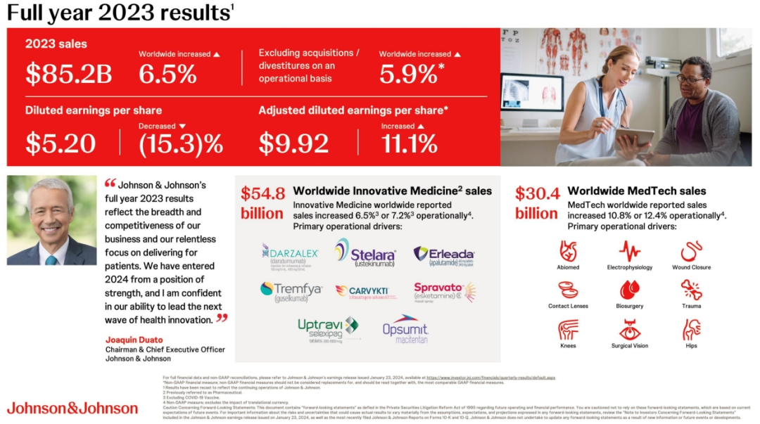 日前,强生发布了2023年全年业绩,其全年总营收852亿美元,同比增长6.5%。
