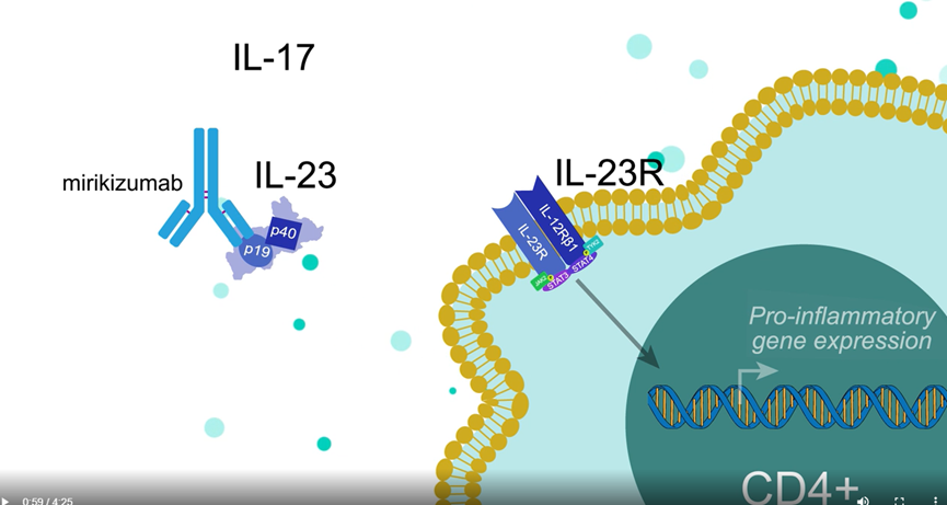 Mirikizumab是一种由礼来公司开发的人源化抗IL-23的IgG4单克隆抗体,用于治疗溃疡性结肠炎 (UC) 和克罗恩病。首先于2023 年3月在日本被批准用于对常规疗法或治疗反应不足的中重度UC患者的诱导和维持治疗,之后又分别于2023年5月和10月被EMA和FDA批准。