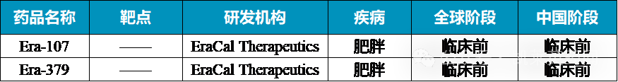 Era-379是一种尚未公开靶点的新型口服小分子抑制剂,通过抑制食欲调节肥胖患者的体重。该药物可驱动外周肝脑信号传导,并与靶向胰高血糖素样肽-1(GLP-1)的药物在体内协同作用,成为减肥手术的有效替代方案。