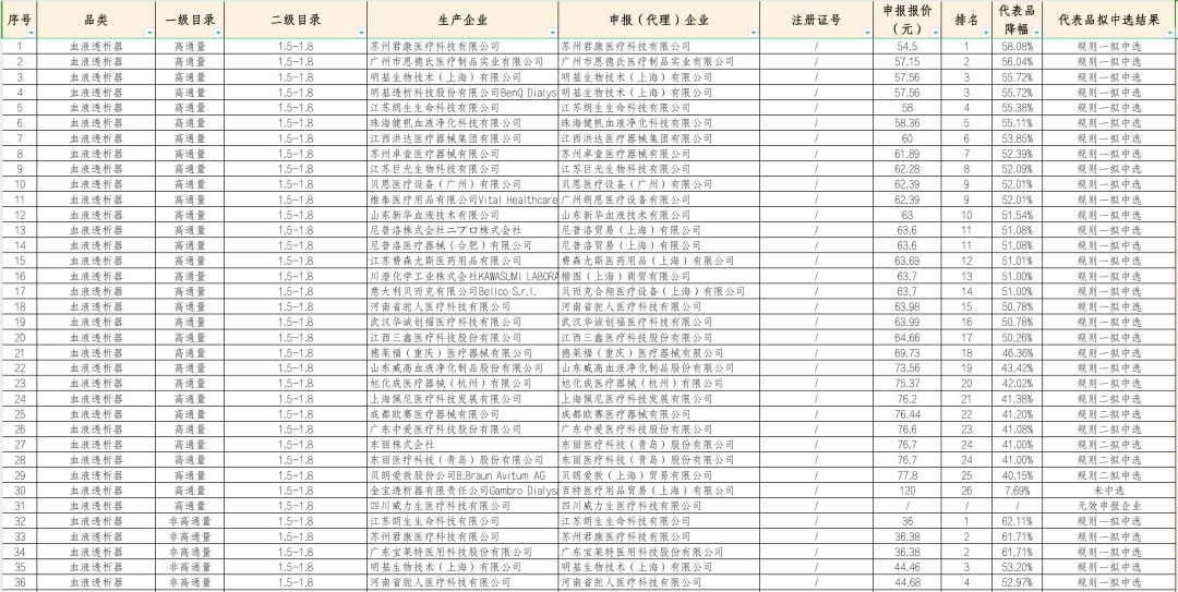 01 血透集采结果出炉,企业报价速览