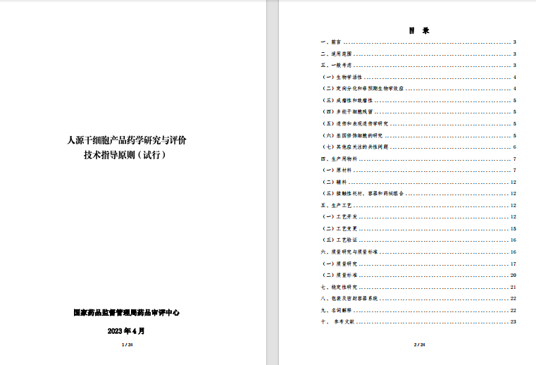 2023年4月27日,国家药审中心发布了《人源干细胞产品药学研究与评价技术指导原则(试行),以期规范和指导人源干细胞产品的药学研发、生产和注册。