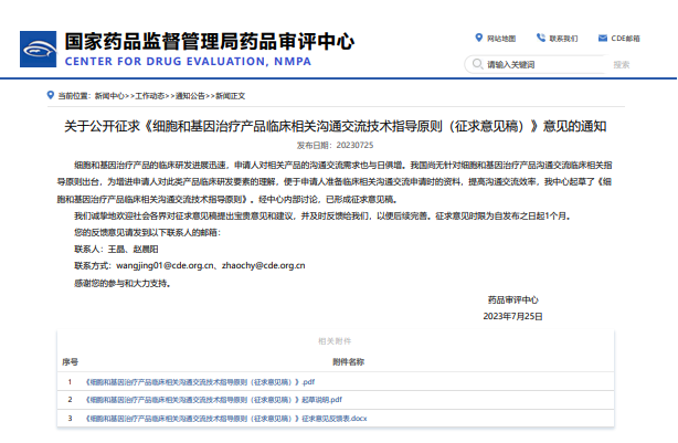 05 2023年7月25日《细胞和基因治疗产品临床相关沟通交流技术指导原则(征求意见稿)》