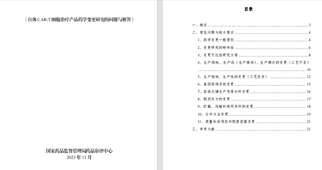 12 2023年11月16日《自体CAR-T细胞治疗产品药学变更研究的问题与解答》