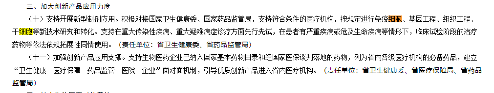 其中明确提出:根据国家有关要求,持续做好细胞治疗临床研究省级初审、备案、监管。支持细胞和基因治疗、罕见病等细分领域发展。