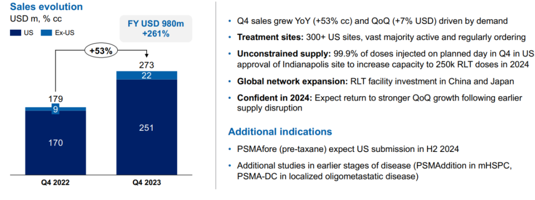 Lutathera在上市首年营收达到了1.67亿美元,2019年增长到4.41亿美元,2022年营收为4.71亿美元,2023年销售额增长至6.05亿美元,同比增长28%[8]。