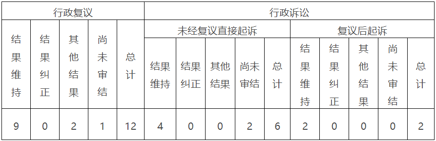 2023年我委本级涉及政府信息公开申请办理的行政复议申请12件;行政诉讼8件(未经复议直接起诉案件6件),无判令违法及败诉案件。
